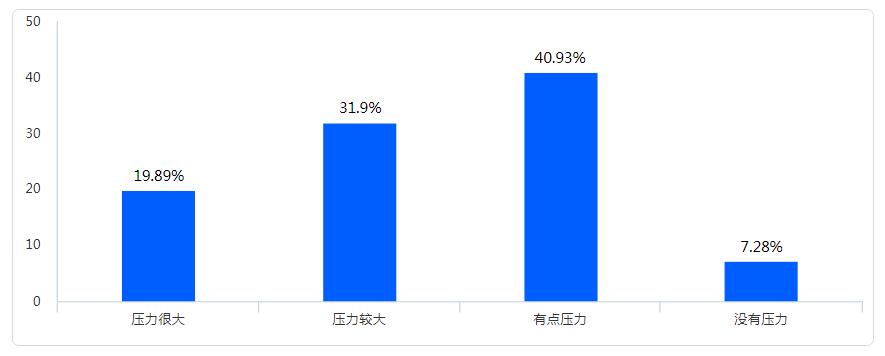 在线学习给自己是否带来了压力?51.79%的学生感觉“压力较大”或“压力很大”;40.93%的学生感觉“有点压力”;只有7.28%的学生感觉“没有压力”。