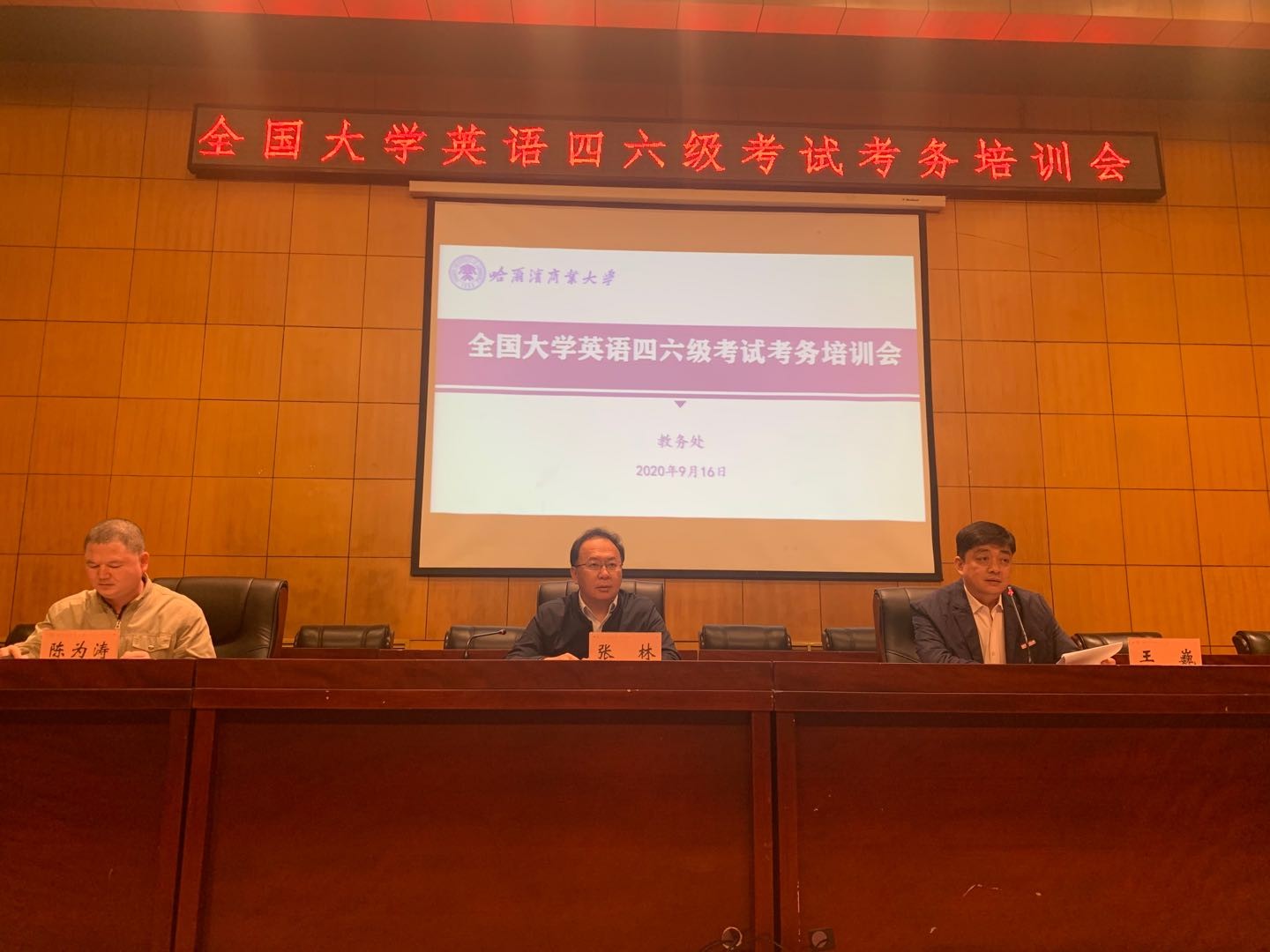 2020916日下午,全国大学外语四六级考试考务培训会在专家公寓报告厅召开,副校长张林、教务处处长王巍、副处长陈为涛、副处长卜迟武、各学院教学院长及所有监考和巡考教师参加了会议,会议由王巍主持。