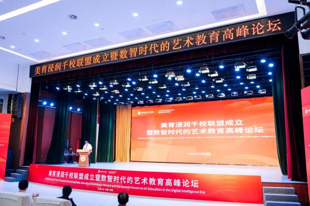 2025年5月17日,“美育浸润千校联盟”成立仪式在山东师范大学举行,来自教育部体育卫生与艺术教育司、教育部全国高校美育教学指导委员会、山东省教育厅、中华美学学会、高校的领导和专家以及师生代表近700余人参加仪式。仪式上发布了《美育浸润千校联盟行动倡议书》,将以“资源共享、协同创新、浸润育人”为宗旨,构建全国性美育浸润协同发展平台,探索数智时代艺术教育的理论构建与实践路径,实现美育资源的共建共享,推动形成美育浸润大中小学一体化发展的育人新格局。学校加入全国美育浸润千校联盟,能够加强与联盟其他成员高校合作与交流,丰富美育教育资源,提升美育教育质量和水平。