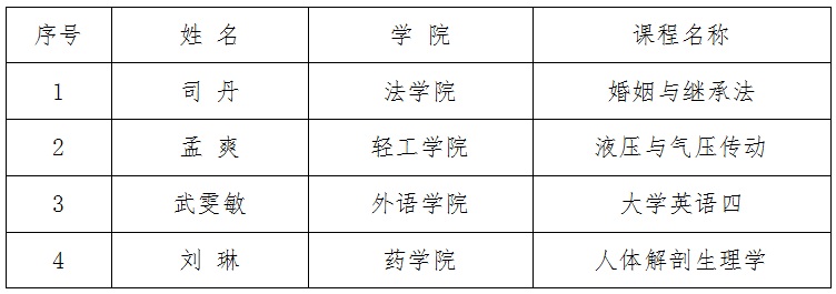 依据黑龙江省教育厅《关于开展2020年黑龙江省高等学校课程思政建设示范高校、示范课程、教学名师和教学团队等遴选工作的通知》(黑教高函〔2020〕222号)和《哈尔滨商业大学关于开展课程思政建设示范课程、教学名师和教学团队等遴选工作的通知》,由学院组织申报,经资格审查,通过组织专家评审,确定拟推荐省课程思政建设示范课程4门、教学名师2人、教学团队2个。